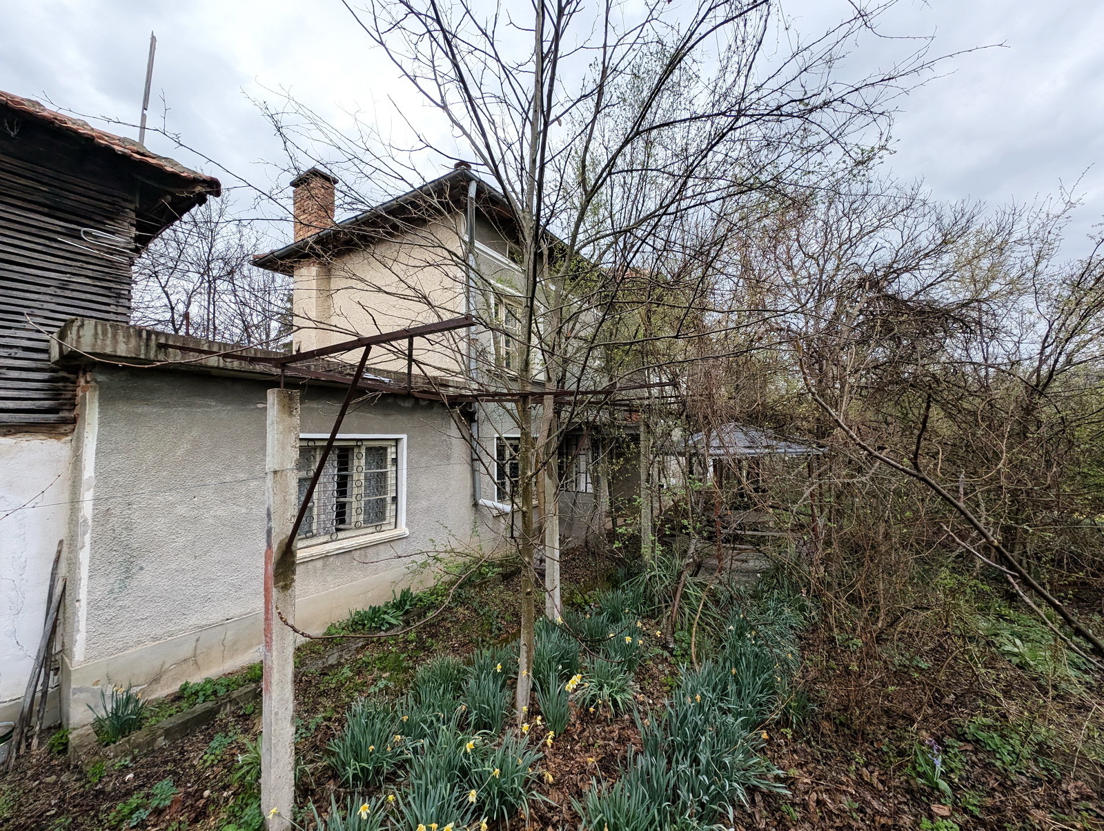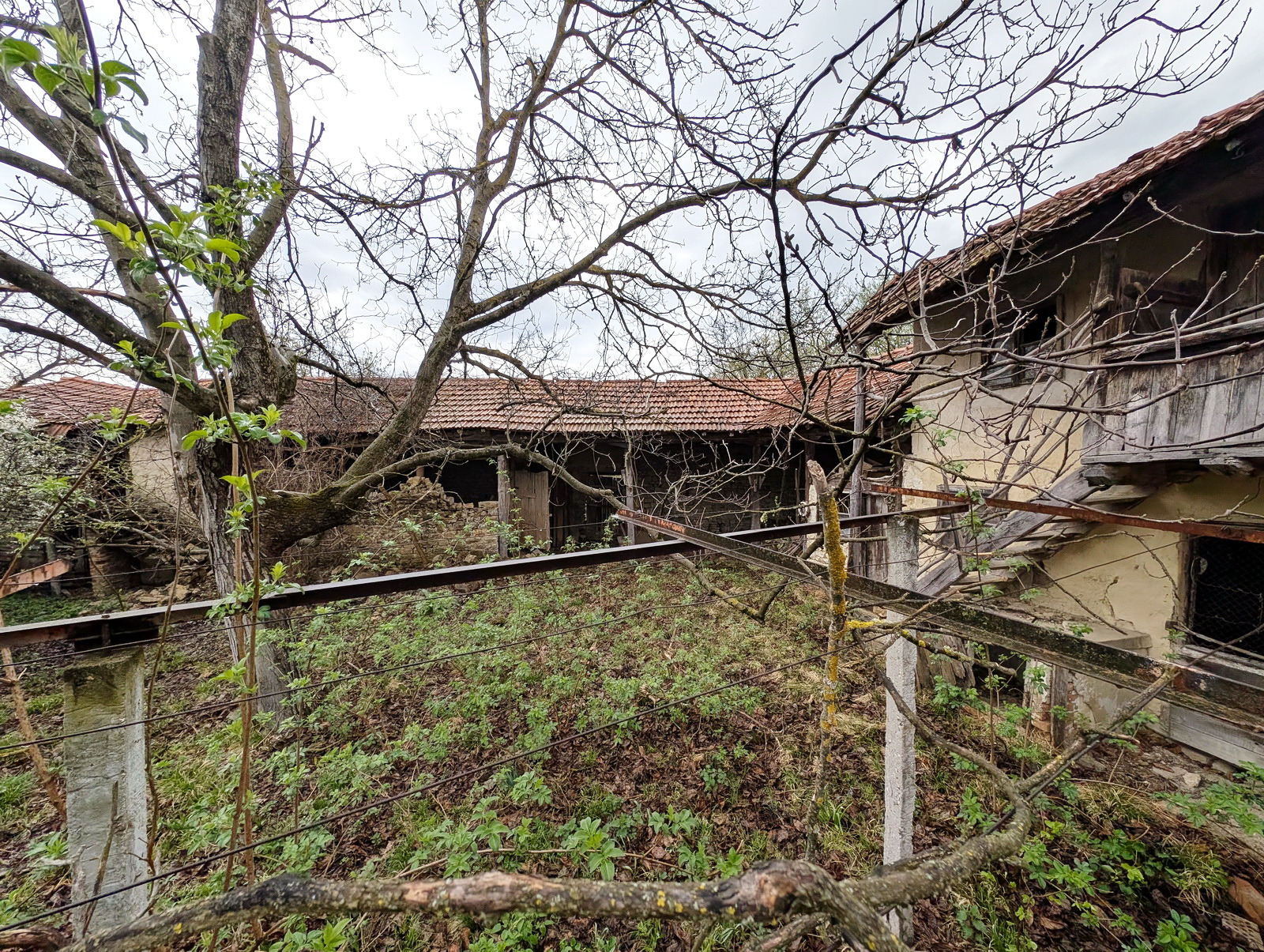 Дворът е голям, като площта му е 1090 кв.м. Има няколко допълнителни каменни пристройки, голям хамбар и навеси. До къщата е долепен гараж. Има каменна ограда около имота осигуряваща уединение. Къщата има нужда от ремонтиране и модернизиране.