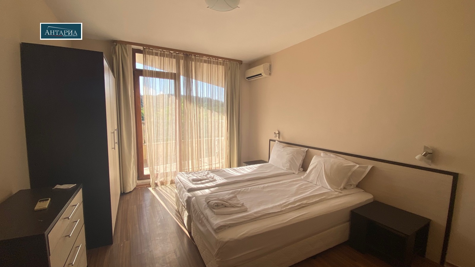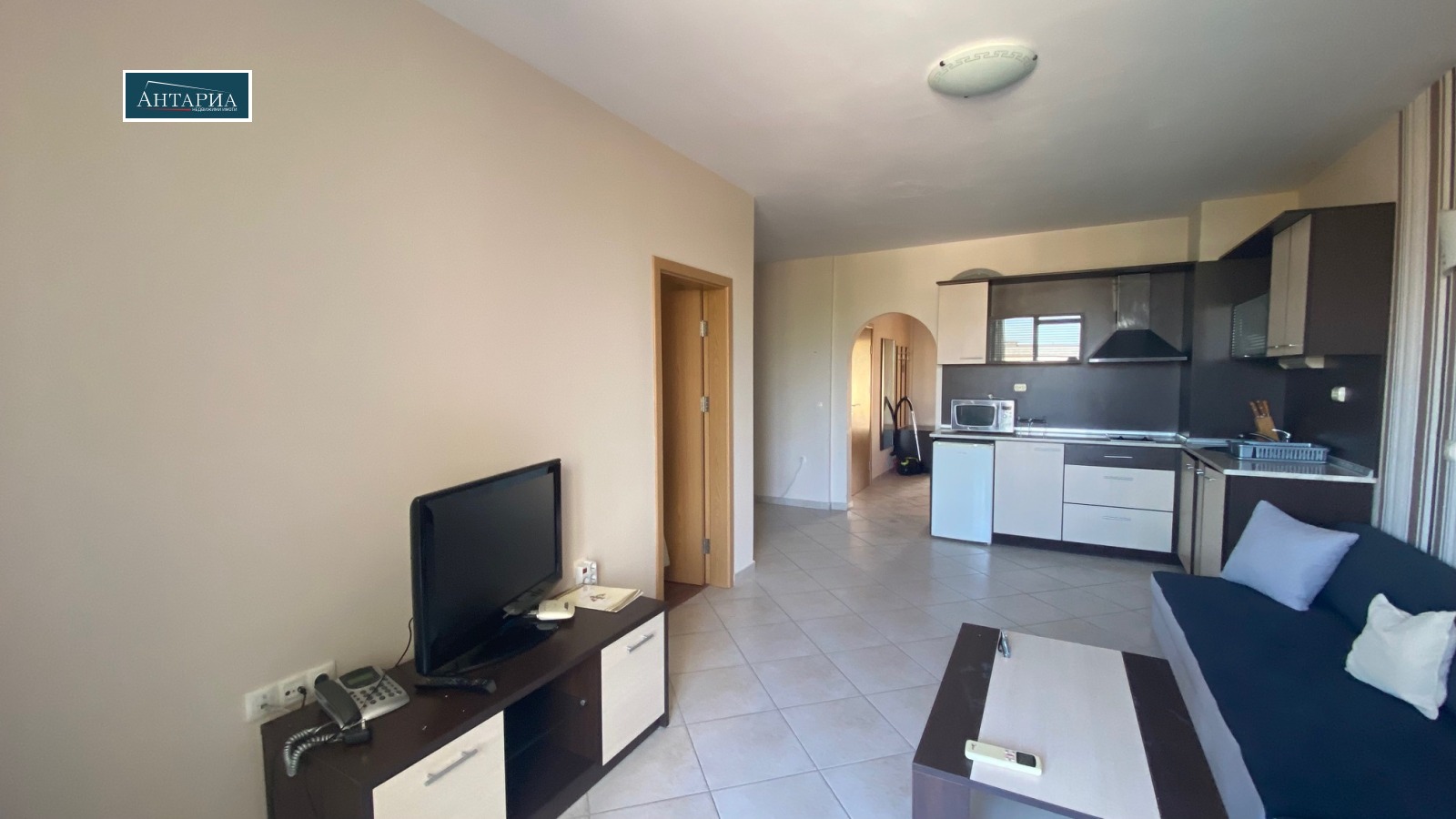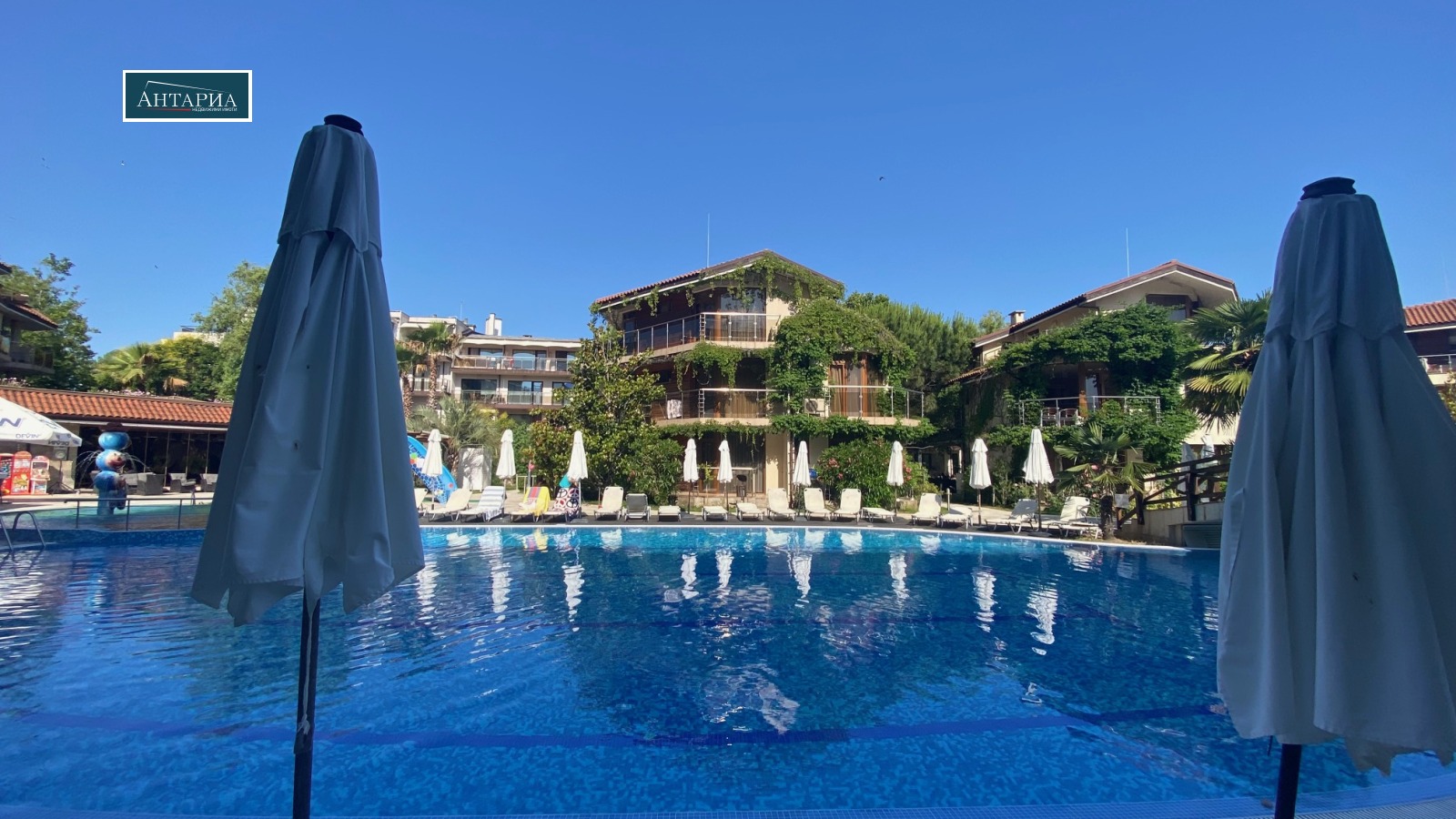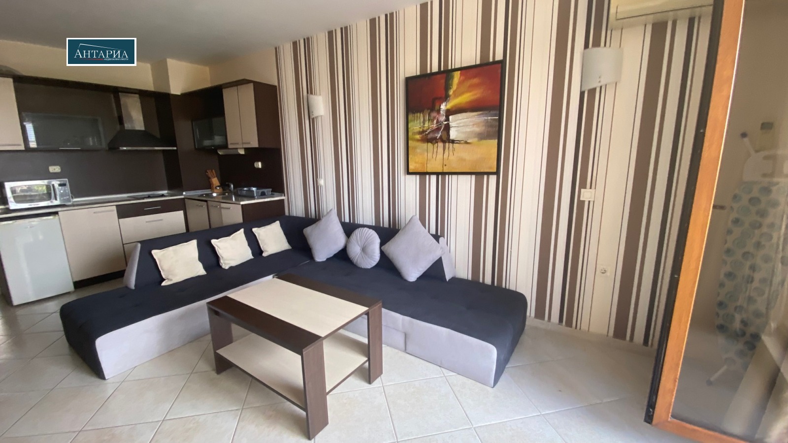Апартамент на първа линия и с изглед към морето в к-с Лагуна бийч. Апартаментът е на четвърти етаж, функционално разпределен в просторна дневна с трапезария и кухня, голяма тераса с изглед към красиво аранжираната територия и басейна в комплекса, две самостоятелни спални, всяка с излаз към втора голяма тераса, две бани с тоалетна.