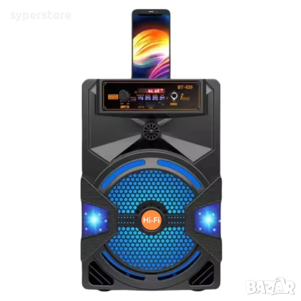 🔊 Безжична Bluetooth колонка 8" с микрофон, дистанционно и LED светлини – Digital One SP01110 (YE-801)