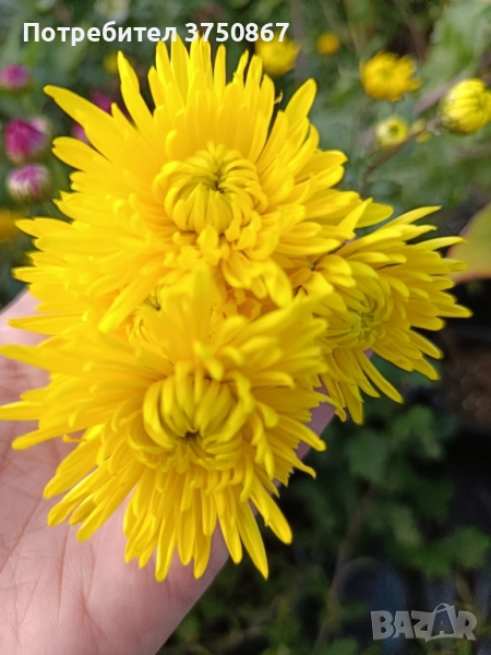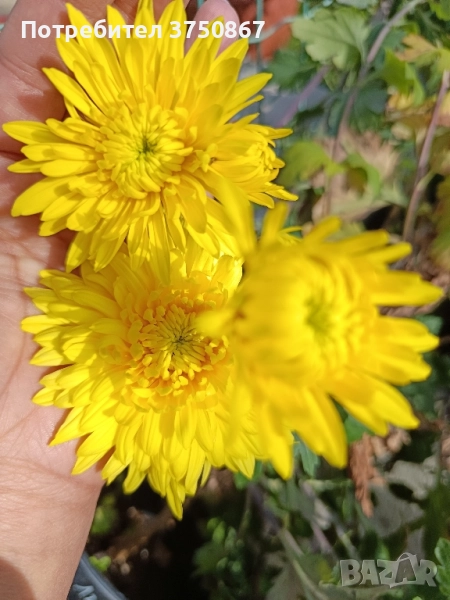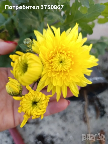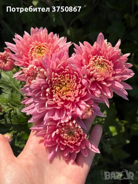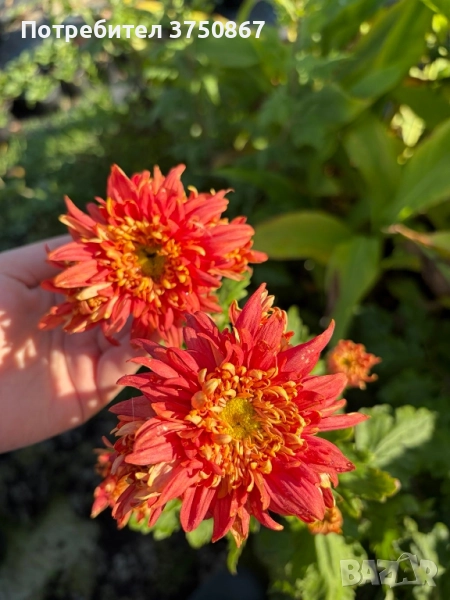 хризантеми – селекция, създадена с грижа! 💞♥️💞Изключителни хризантеми, създадени по специална селекционна програма в България и адаптирани към нашите климатични условия. Отличават се с здравина, дълготраен и обилен цъфтеж, както и с изключителна декоративна стойност — съвършен избор за всяка градина. Подбрани с мисъл за българския градинар. Идеални за градини и дворове, които търсят нещо наистина различно.❤️ Сорт ЛидияСорт Лидия принадлежи към групата на лъчевидните сортове хризантеми. Растенията са високи 145–150 см със среден брой продуктивни разклонения на 1 растение – 2, 3. Цветът е лъчевиден с тръбести лигули. Баграта на цвета е виолетовокеремидена с жълтеникав център, а цветната пъпка преди разцъфтяване е тъмновиолетова.Диаметърът на централното съцветие при отглеждане без отстраняване на страничните пъпки (като дребноцветна, букетна форма) е около 13,7 см, а при отглеждане като едроцветна хризантема с отстраняване на страничните пъпки – до 16,5 см. На едно разклонение се образуват средно 7, 3 едновременно цъфтящи цветове.Началото на цъфтежа: 5–15 ноември при естествена дължина на деня.❤️ Сорт ЖороРастенията достигат височина 100–110 см. Цветовете са кичести с наситена оранжевочервена багра на лигулите от горната страна и оранжева – от долната.Диаметърът на съцветието при отглеждане като дребноцветна хризантема е средно 8,5 см с 6–7 цвята на едно стъбло, а като едроцветна – до 12 см.❤️ Сорт ЖениРастенията достигат височина 85–90 см. Съцветията са кичести с наситено лилаворозова багра на лигулите от горната страна и сребристорозова – от долната.Диаметърът на съцветието при отглеждане като дребноцветна хризантема е средно 9,5 см с 5–6 цвята на едно стъбло, а като едроцветна – 12–13 см.💞 Всички хризантеми са подхранени с Osmocote Exact Tablets, който снабдява растенията с хранителни вещества в продължение на шест месеца и осигурява 100% защита на кореновата система от преторяване, която в момента е много добре развита.💞 Предлаганите от нас хризантеми не са отглеждани в оранжерии. През цялото време от развитието си са получавали естествена топлина, светлина и свеж въздух, като са напълно климатизирани към условия за отглеждане на открито. Всички сортове притежават сертификат.👉👉👉 Цена: 9,00лв. ❗❗❗ Отстъпка:При над 5 броя цена 8,00лв. за брой.При над 10 броя цена 7,00лв. за брой.🚘📦🚘 Работим с куриерска фирма Еконт. За Варна може и лично предаване.📝❤️📝 може да направите поръчка и на телефони:☎️💌☎️ Reni's Gardens +359888873211 +359886771048#едроцветнихризантеми #букетнихризантеми #българскахризантема #красивицветя #цветя #хризантеми #есенницветя #хризантема #renisgardenscom