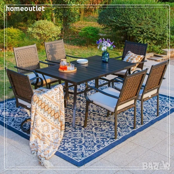 Шест местна маса с метална конструкция, която е прахово боядисана