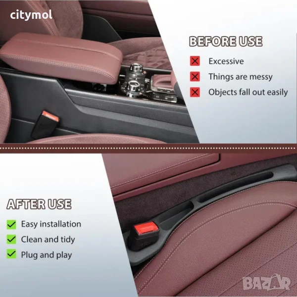 2 броя уплътнители с отделения за телефон и малки предмети който се поставя между седалките на автомбила - подходящ за различни модели превозни средства