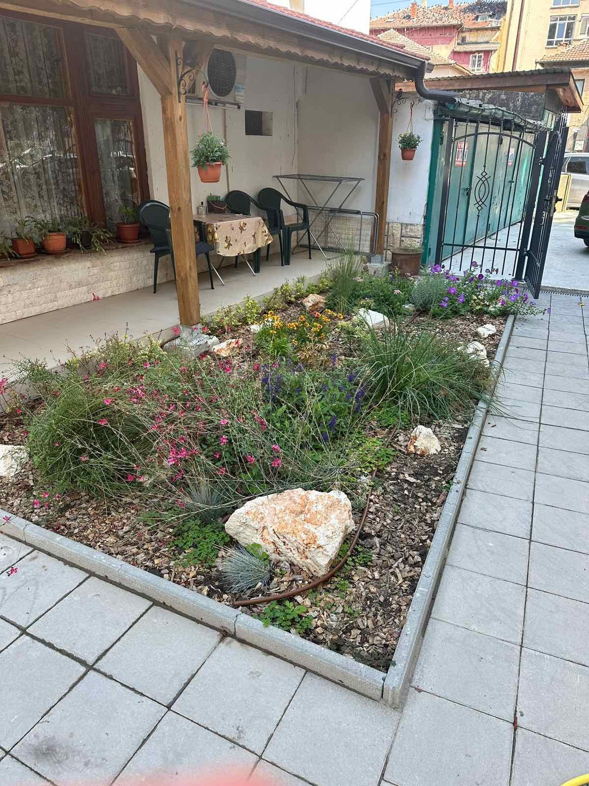 Предлагаме за продажба Къща със застроена площ 91 кв.м. в центъра на град Плевен. Прилежащ двор, заграден, с площ от 364кв.м.в идеални части от общо 505кв.м. Къщата е изцяло санирана и реновирана и хидроизолирана, с нов покрив. Състои се : на първи етаж от антре ,голяма дневна с кухненски тракт, самостоятелна голяма спалня от която се влиза в баня с тоалетна. Със самостоятелен вход се слиза в сутеренно помещение , което се състои от коридор, стая, мокро помещение, голяма стая, санитарен възел. Ремонтът е на етап комуникации: ел. и ВиК, хидроизолация и гипсокартон.Допълнителна самостоятелна жилищна постройка с площ от 47кв.м.- обособена като гарсониера , стая с кухня и баня с тоалетна. Дворът е облагороден и поддържан, външна чешма, нов навес. Към имота се прадлагат в цената и два гаража , съответно с площ от 17кв.м. и 13кв.м.