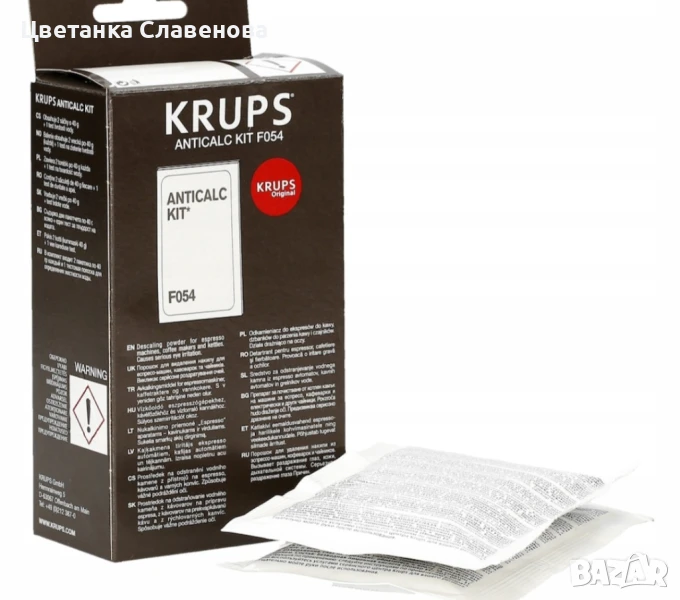 Оригиналният ANTICALC KIT F054 KRUPS препарат за отстраняване на котлен камък!