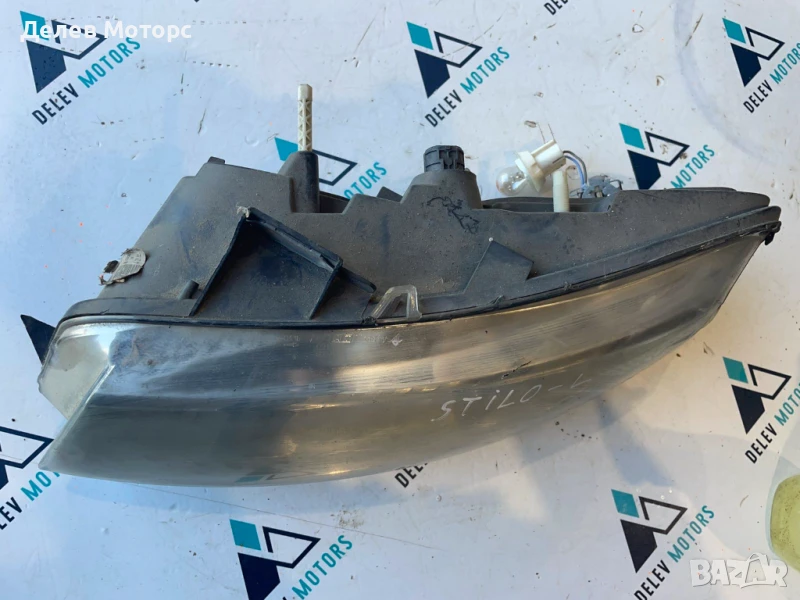 Фар ляв за Фиат Стило, Fiat Stilo в автоморга Delev Motors, между с. Каменар и с.Куманово гр. Варна. ВСИЧКИ ЦЕНИ СА С ВКЛЮЧЕНО ДДС. ВСИЧКИ ЧАСТИ СА С 14 ДНИ ПРАВО НА ВРЪЩАНЕ. Изпращане на части чрез наложен платеж с ЕКОНТ с 30% отстъпка от куриерските услуги за цялата страна, получаване на следващият ден. Доставката и връщането е за сметка на КУПУВАЧА. Изкупуване на западни и японски автомобили, джипове и бусове след 2020 г. за части. Издаване на удостоверение за бракуване пред КАТ. Издаване на всички необходими документи за регистърация на двигател в КАТ. РАБОТНО ВРЕМЕ ОТ ПОНЕДЕЛНИК ДО ПЕТЪК от 9.00 ч. до 18.00 ч., ПОЧИВНИ ДНИ СЪБОТА И НЕДЕЛЯ. За контакти: 0897852371