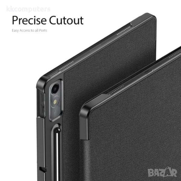 Приляга идеално към Таблета. Защитава гърба, дисплея и в същото време има приятен и класически дизайн - тип книга. Не увеличава размера на Вашия Lenovo Tab P12 12.7съществено.