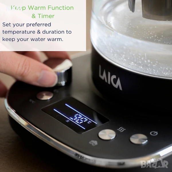 Нова Електрическа стъклена кана с филтър за вода LAICA ISEO → Обява 50784078