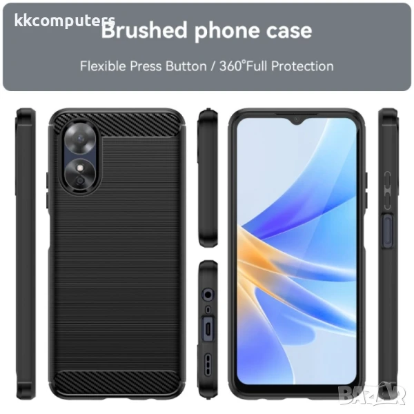 OPPO A17 Удароустойчив Carbon Fiber Калъф и Протектор → Обява 50784124