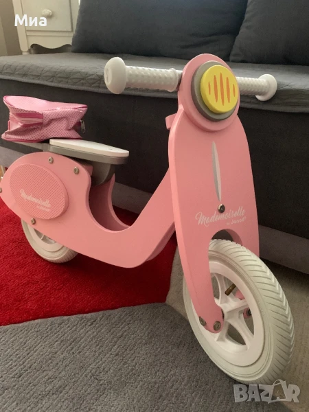 Скутера за баланс с чанта е подходящ за дейности на открито. Тази дървена играчка във винтидж стил ще помогне на вашата принцеса да овладее баланса си и да развие координацията си със собствено темпо. Така ще могат да имитират по-големи деца и да се научат да карат колело по-лесно без колела.