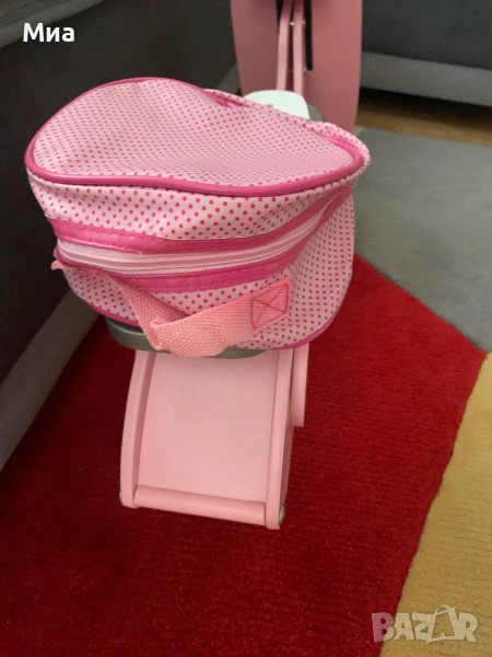 Розовият скутер за баланс с чанта е подходящ за деца от 24 месечна възраст. Всяко мъниче ще придобие увереност и ще открие радостите от скоростта със собствено темпо. Колелото има удобни силиконови дръжки и седалка, която може да се регулира на височина от 32 до 36,5 см . Така лесно ще се адаптира към размера на детето, докато расте.