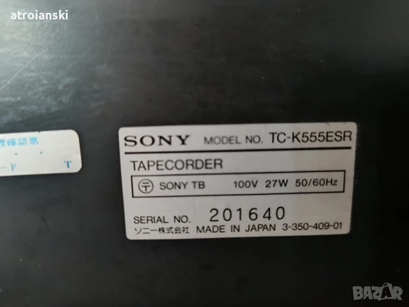 Касетен дек SONY TC-K 555ESR, правен за японския пазар и работи на 100v.
