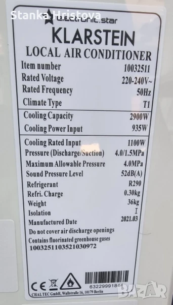 Продавам Работещи Чисто нови Мобилни климатици Klastein New Breeze ECO 10 000 BTU , 2,9 kW.той е изключително икономичен с входяща мощност от само 900 W.
