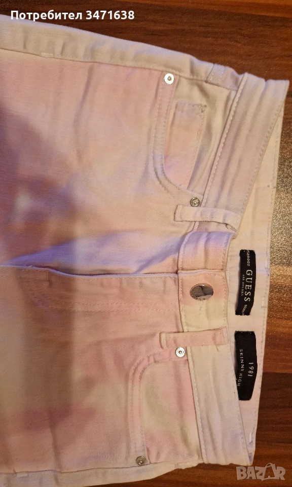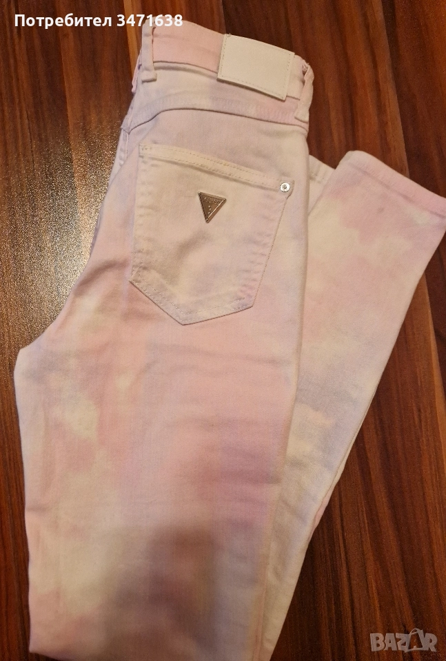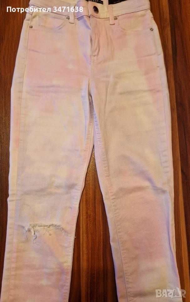 Дънки Guess, 25 размер. Много цветни, бяло с бебешко розово и много светлосиньо,еластични. Носени няколко пъти 85 лв.
