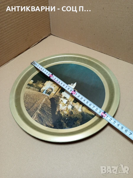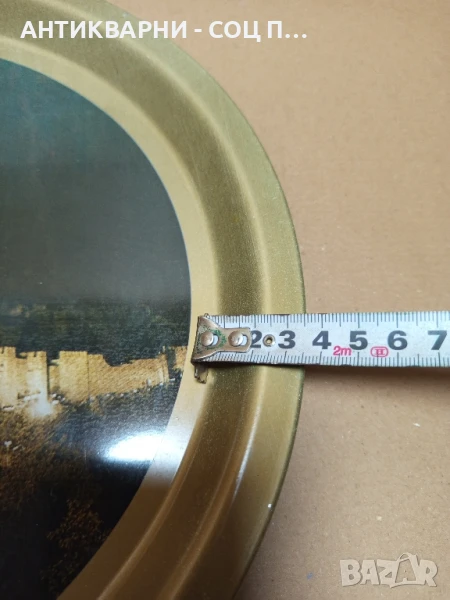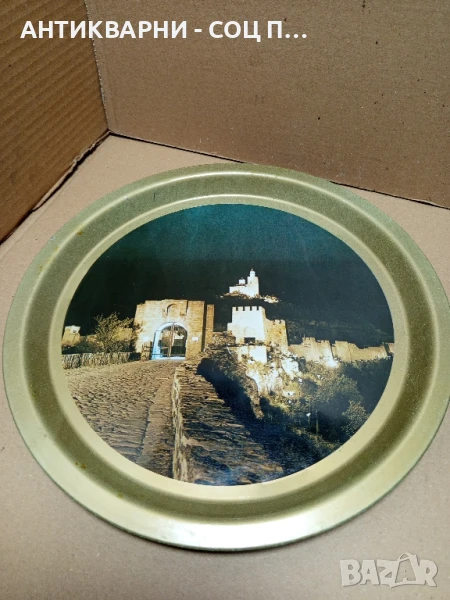 Здравейте продавам стар метален поднос от соца с изображението на старата крепост Царевец
