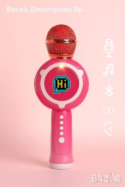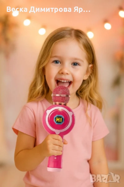 Безжичният караоке микрофон е създаден специално за малки музикални таланти. Съчетава забавление и обучение чрез музика и светлина. Подходящ е за деца над 3 години и представлява чудесен избор за подарък за рожден ден, празник или просто за радост в ежедневието. Идеален за малки момичета, които обичат да пеят и да се изявяват.