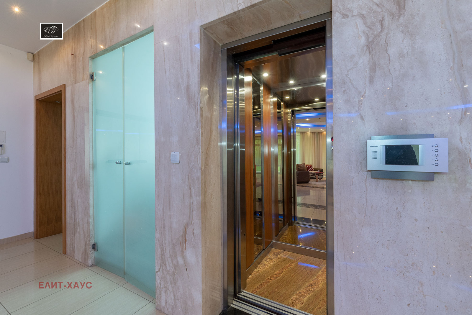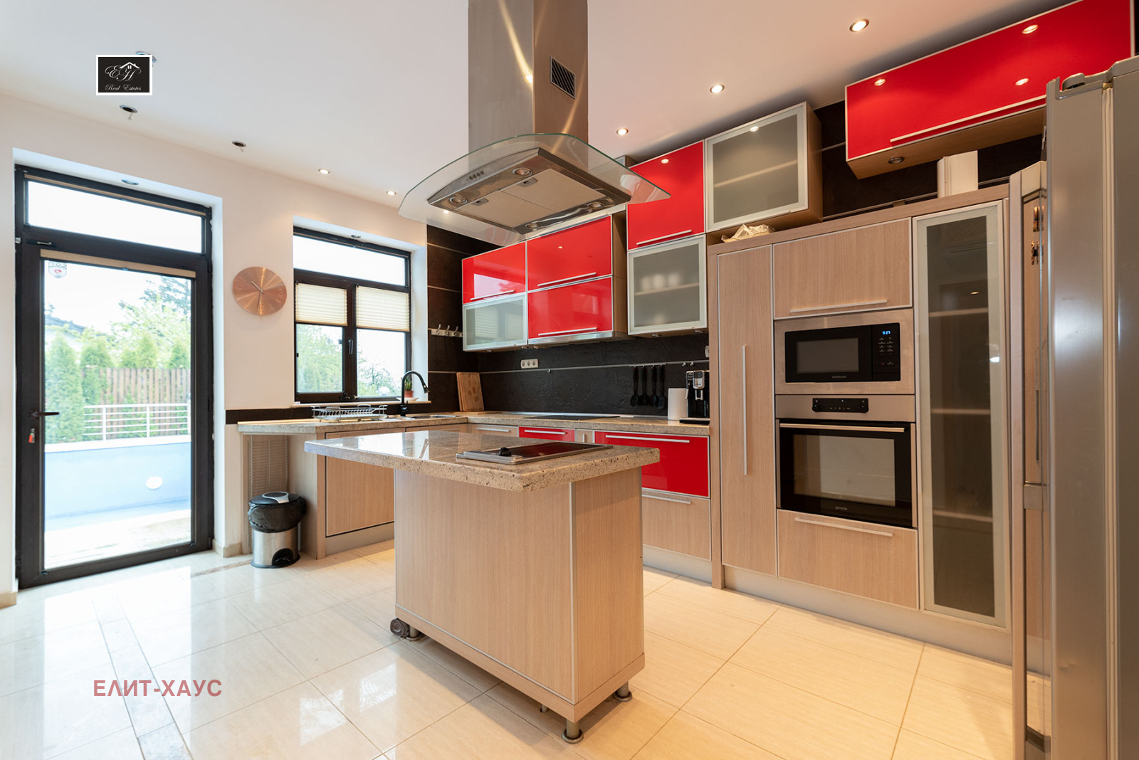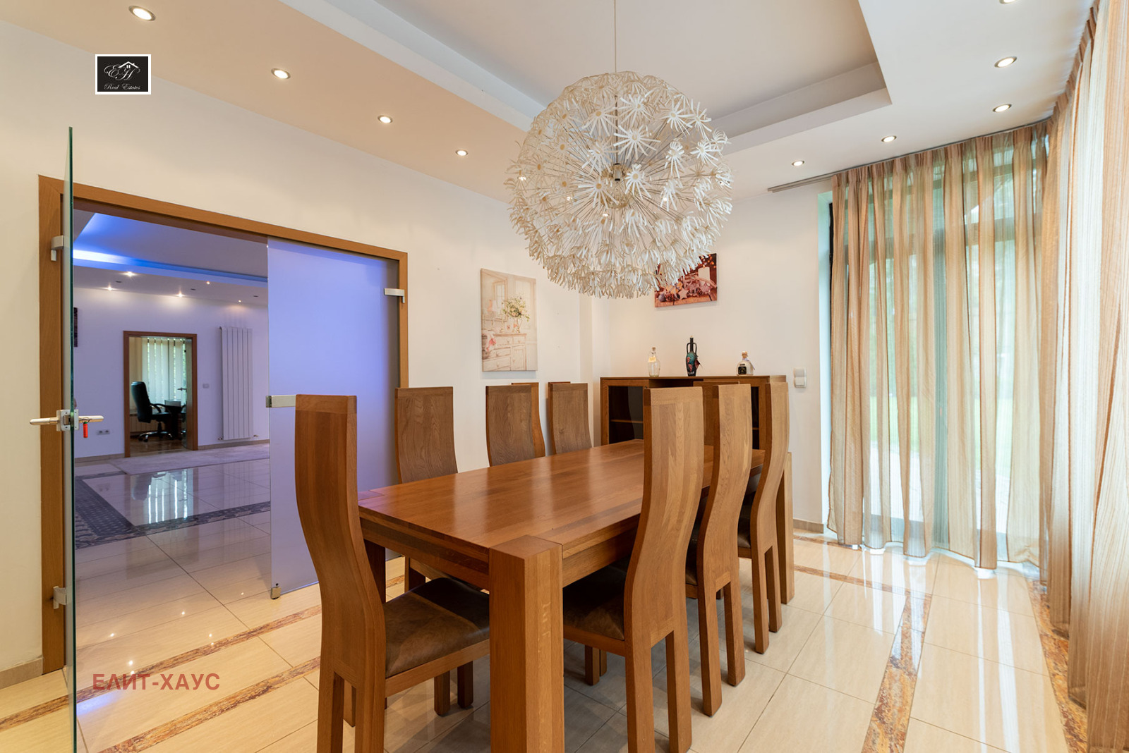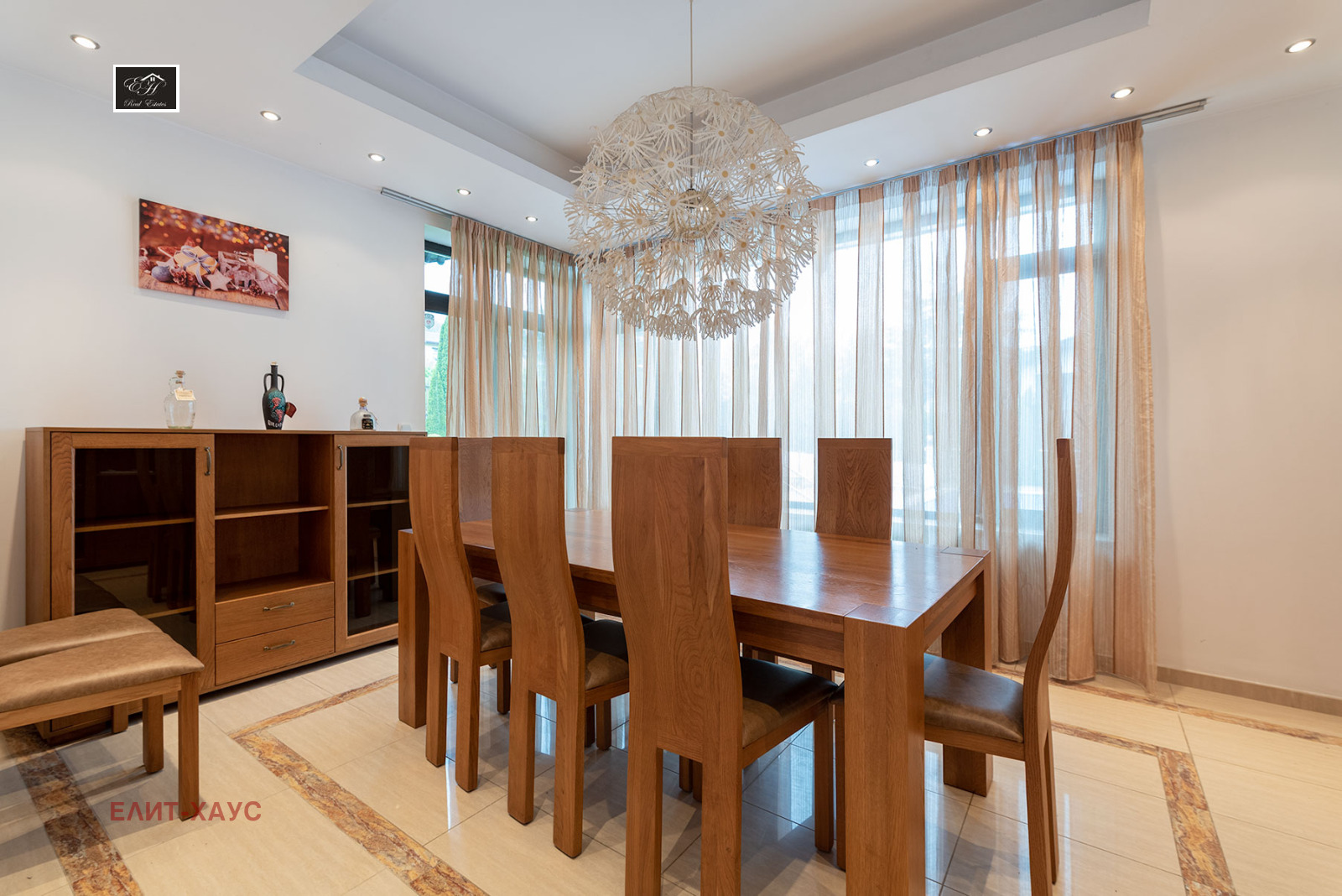 Представяме на Вашето внимание прекрасна модерна и луксозно обзаведена къща в кв. Симеоново. Дворът е богато озеленен,с прекрасна панорама към Витоша.Къщата разполага с голям басейи, барбекю и асансьор.Разпределение: