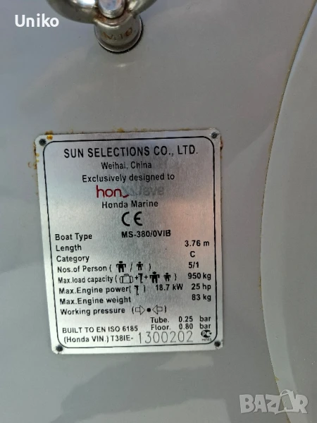 Honda T38-IE3...Продавам надуваема лодка със твърдо надуваемо дъно.Лодката е закупена 2022г.и е с гръцка регистрация. Предлага със гребла,сак,седалка ,чанта и ел.помпа.Няма лепенки, скъсано и протрито...ползвана няколко пъти . За повече информация на телефон 0888754111.Цена 2850лв.