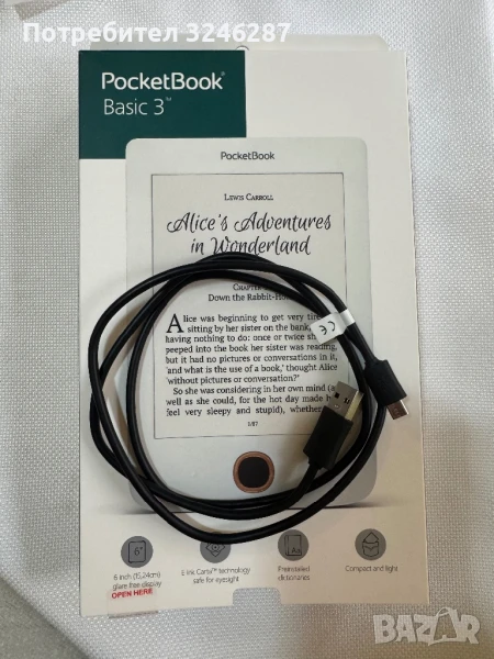 PocketBook Basic 3 (модел 614W) – Черен + оригинална кожена калъфка → Обява 50788556
