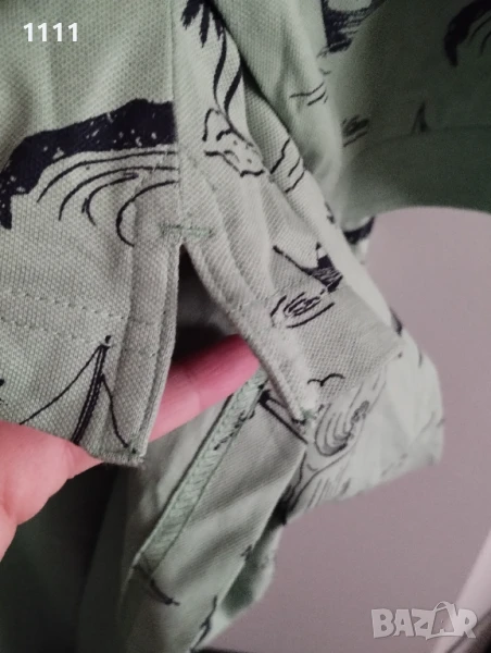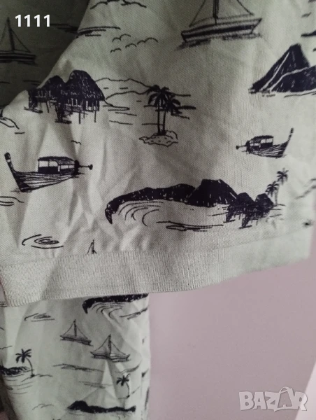 Тениската е нова, само е махнат етикета.Приятен зелен цвят с интересен десен.Размер 5XL.С дължина 80, ширина 70.100%памук.Цена 33лв.