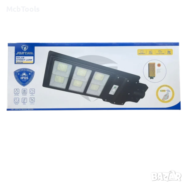Улична соларна лампа със соларен панел и стойка 300W, 15 000mAh, 6500K