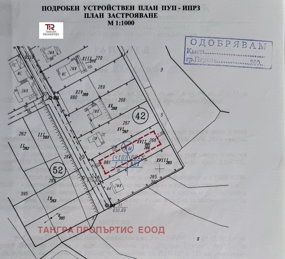 Агенция Тангра пропъртис, офис Перник, предлага на Вашето внимание Урегулиран Поземлен Имот, готов за строеж, с ПУП и ВИЗА за застрояване на масивна жилищна сграда с височина до 10метра, с комуникации и отлична локация.