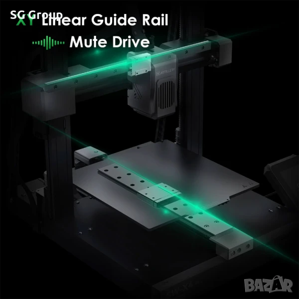 За да отговори на изискванията за високоскоростен печат, Sidewinder X4 Pro е оборудван с изключително стабилни изцяло метални линейни релси. Те имат плъзгачи със сачмени лагери по осите X и Y, които не само осигуряват по-голяма стабилност на цялостната конструкция, но и по-висока прецизност, по-плавни движения и следователно цялостно по-добро качество на 3D печат.