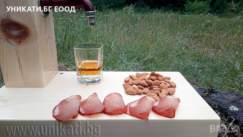 Подарете си не просто продукт, а цял ритуал - нашата ръчно изработена дъска за мезета с вградена чешма за наливане на ракия, уиски и други питиета, съчетава автентичност и практичност. Изработена от висококачествено дърво, тази уникална дъска е перфектна за събирания с приятели, празничен повод, или подарък за юбилей. Комбинацията между уютната визия и практичната чешма за алкохол създава неповторима атмосфера и превръща всяка вечер в повод за празник.