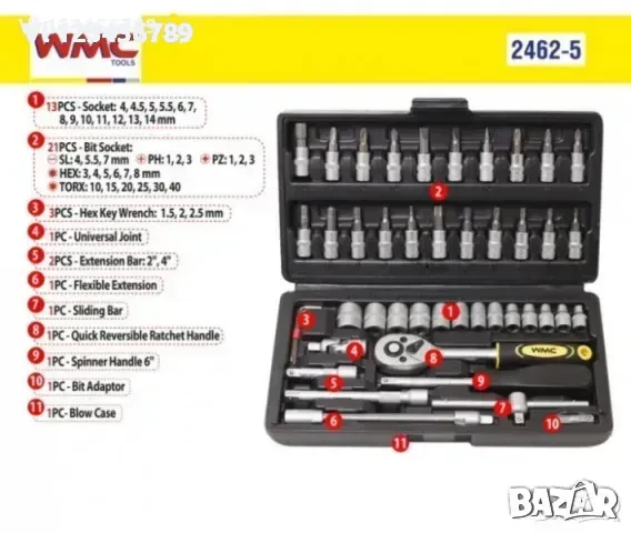 Комплект Инструменти WMC 46 части гедоре-тресчотка с накрайници