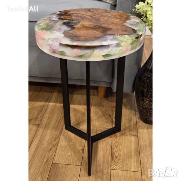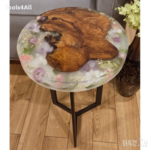 - Ръчно изработена холна маса от дърво и епоксидна смола с вградени цветя, метална основа снимки 5,6,7,8 - 499лв