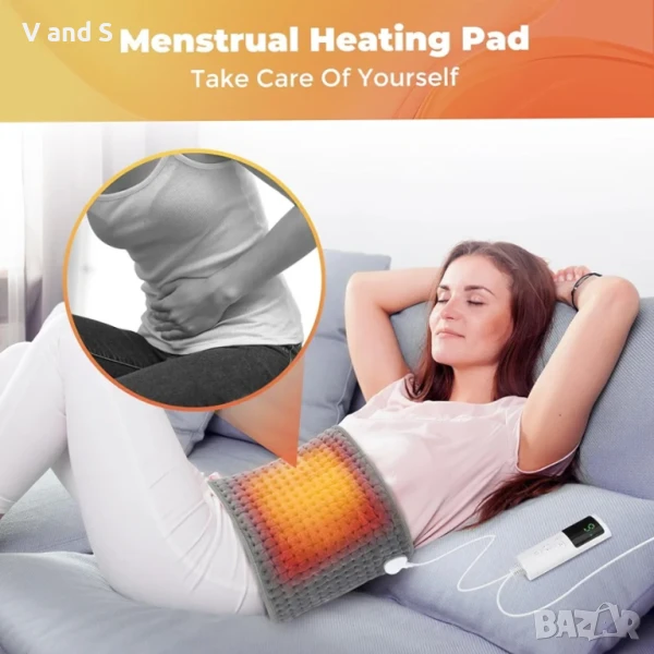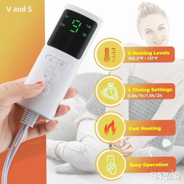 Постелка с LCD контролер, 9 нива на нагряване, 4 настройки за време, бързо нагряване, идеална за гръб, корем и крака - 30x126 см