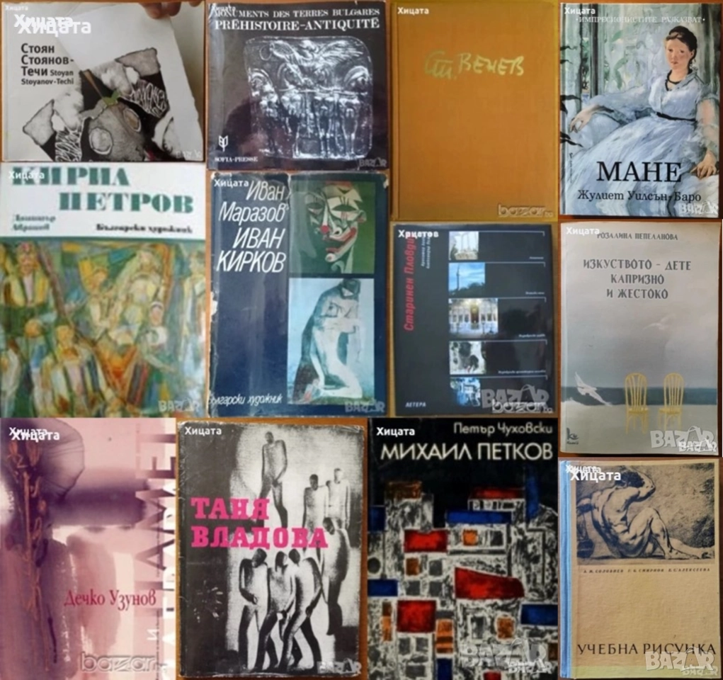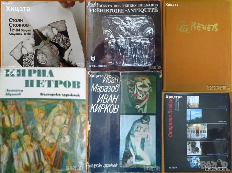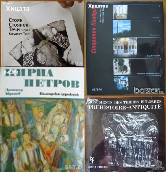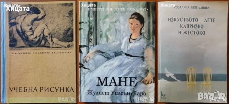 Дечко Узунов: Памет и забрава Едно изследване за изкуството в България,Арс Милениум МММ,2003г.310стр.Отлична! - 200лв Таня Владова,Графика,Български художник,1992г.76стр.Отлична с леки забележки по обложката! - 40лв Стоян Венев,Богомил Райнов,Български художник,1965г.152стр.- 120лв. Стоян Стоянов-Течи,Аксиния Джурова,Български художник,2006г.135стр. - 80лв. Кирил Петров,Димитър Аврамов,Български художник,1975г.250стр.Отличен албум със забележки по обложката!- 100лв. Иван Кирков,Иван Маразов,Български художник,1977г.132стр.Отлична със скъсана обложка.- 70лв. Михаил Петков,Петър Чуховски,Български художник,1978г.64стр.Отлична! - 50лв. Monuments des Terres Bulgares.Prehistoire-Antiquite,Ivan Venedikov, Nikolai Todorov,Sofia-Presse,204стр.Отличен албум на Френски език с минимални забележки по обложката! - 50лв. Старинен Пловдив,Красимир Линков, Александър Пижев , Летера,1998г. 200стр. На Български език - 120лв. Die Altstadt von Plovdıv,Krassimir Linkov, Alexander Pishev,Lettera, 1998г.200стр.На немски език! - 120лв. Любен Прашков - реставратор и изкуствовед,2006г.392стр. - 50лв Sculpture of Edgar Degas 1834-1917,National Art Gallery,Триезично издание:Български;Английски;Френски;Министерство на културата-република България/Френски институт София,2009г.206стр. - 145лв Импресионистите разказват:Мане,Жулиет Уилсън-Баро,Бард,2007г.224стр.Отлична! - 65лв.Изкуството - дете капризно и жестоко.Разкази за художниците,Розалина Пепеланова,Камея Груп,2017г.392стр.Отлична! С посвещение и автограф от Розалина Пепеланова. - 40лв Учебна рисунка,А.М.Соловиев,Г.Б.Смирнов,Е.С.Алексеева,Наука и изкуство,1967г.248стр.Отлична! - 65лв. Малки разкази за велики художници,Драган Тенев - 20лв.Поезия и багри,Иван Бориславов - 20лв.Когато гледаме картини,Кенет Кларк - 20лв.Голото тяло,Кенет Кларк - 20лв.Леонардо да Винчи:Разказ за художника,Кенет Кларк - 20лв.Как да гледаме живописта.От Джото до Шагал,Лионело Вентури - 30лв. Животът на Ван Гог,Анри Перюшо - 20лв. Животът на Гоген,Анри Перюшо - 20лв.
