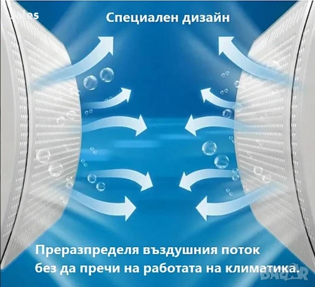 НЕ ПРЕЧИ НА КЛИМАТИКА, НО ЗАЩИТАВА ОТ ДУХАНЕ - Проектиран със специален дизайн със стотици микроскопични дупки, който не пречи на въздушен поток на климатика и не пречи на неговата работа, но разрежда и деликатно отклонява част от струята в различни посоки. Така не духа право към вас.