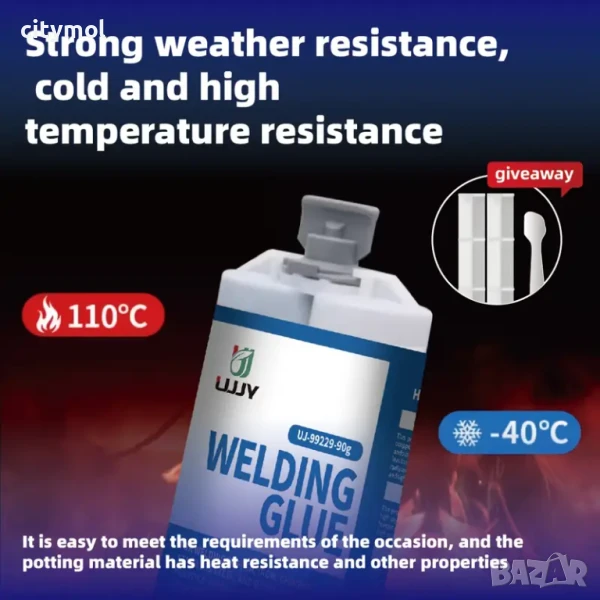 Двукомпонентно лепило за ремонт на метал и пластмаса. Бързо и надеждно лепи части от всякакви метали и сплави (стомана, чугун, алуминий, мед, месинг, бронз, магнезий, калай, олово и др.) във всякаква комбинация. Идеален за бързи ремонти с дългосрочен ефект, например: за запечатване на пукнатини и кухини на повърхности с всякаква форма, възстановяване на повредени резби, както вътрешни, така и външни. Може да се използва както при ремонт на автомобили и друга техника, така и в промишлеността, у дома и в офиса. Втвърдява се в рамките на минути. Окончателното втвърдяване се извършва в рамките на 24 часа, съединението придобива висока механична якост на срязване (3-5 N / mm²) и може да издържи на температури от - 40 до +110 ° C. Характеристики: