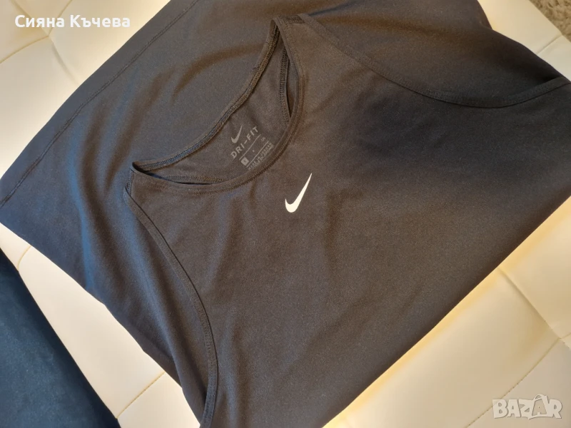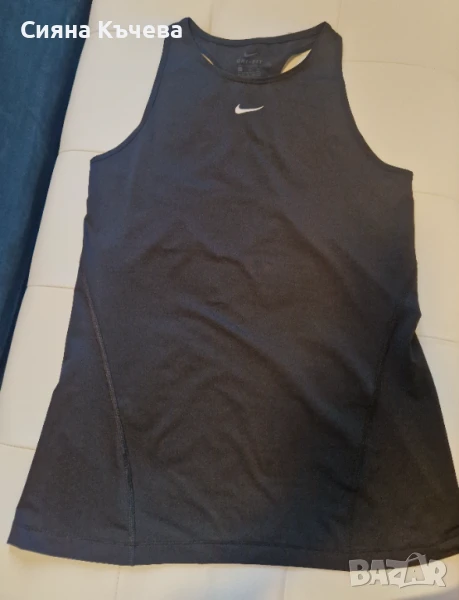 Дамски потник NIKE, удобна еластична дишаща материя. Потника е оригинален,НОВ, не е носен нито веднъж само е пробван, закупен е от спорт депот продавам го защото ми е голям, но скъсах етикета и не можах да го върна.