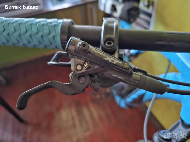 Спирачки Shimano Deore XT 8100, дискове Shimano Ultegra 160mm заден и Saint 180 mm преден.