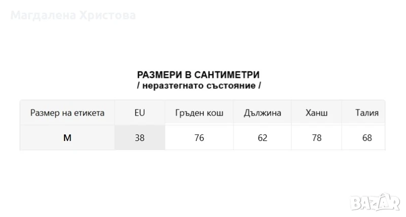На последната снимка има размери в сантиметри / нормално състояние без разтягане /