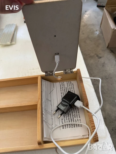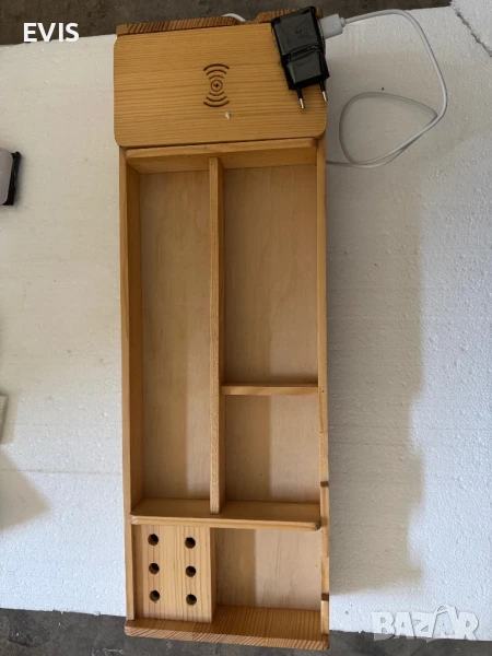 Дървена органайзер кутия с прегради + стойка за зареждане на телефон → Обява 50791824