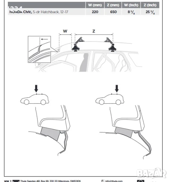 Багажник напречни греди THULE рейки за HONDA Civic 2012-2017 → Обява 50791848