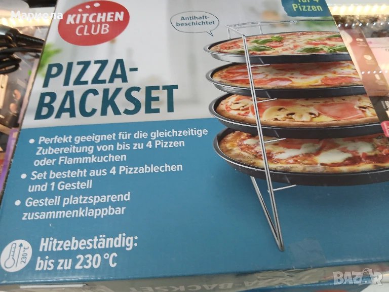 Нови Кухненски комплект за печене на пица Kitchen Club, 4 броя тави.