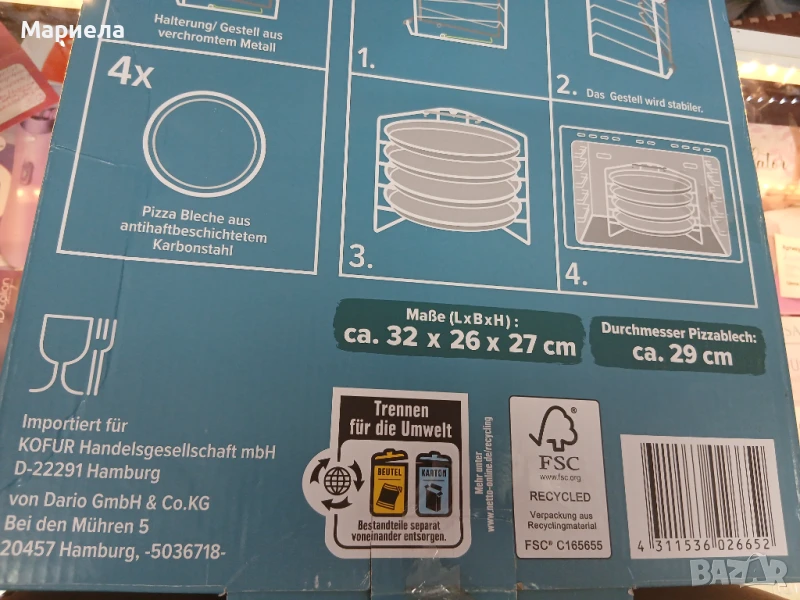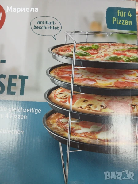 Комплект, състоящ се от 4 тави за пица и 1 рамка