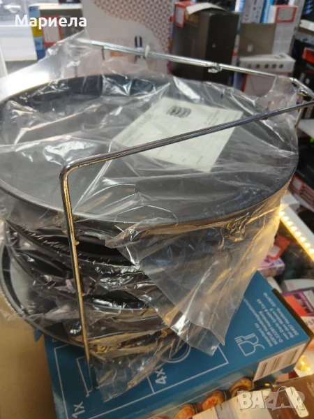 Диаметър на тавите: 29 см;Материал: Тави с незалепващо покритие, рамка от хромиран метал;Устойчивост на топлина: до 230°C;Размери на рамката (ДxШxВ): прибл. 29 х 31 х 20 см;Специални функции: Незалепващо покритие, подходящо за съдомиялна машина, устойчив на топлина.