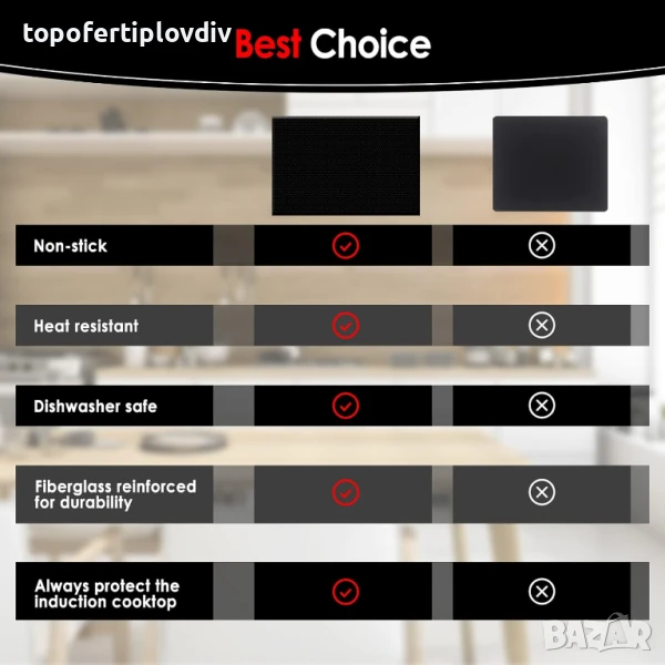 индукционен котлон KitchenRaku 52 x 78 cm Induction Protective Mat