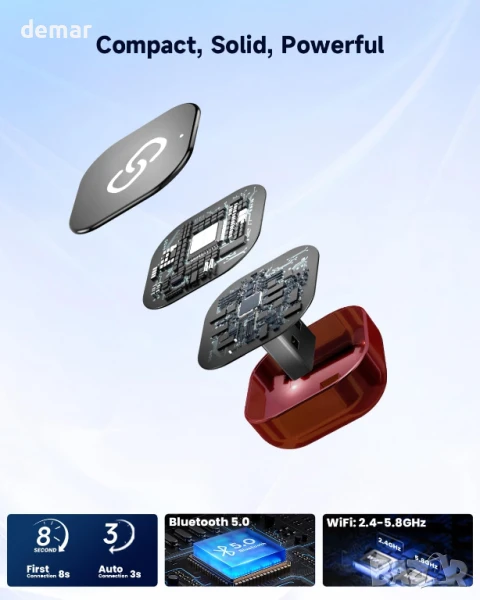 Този компактен безжичен CarPlay адаптер е предназначен за автомобили с OEM кабелен Apple CarPlay (2017+), превръщайки го в безжична система за безпроблемно използване на навигация, музика, Siri и разговори без кабели. Поддържа над 600 модела автомобили и iPhone от iOS 10 нататък. Лесната plug-and-play настройка с автоматично повторно свързване осигурява безпроблемна ежедневна употреба, като Bluetooth и Wi-Fi трябва да бъдат активирани и незаети. Включва два безплатни кабела за данни и многофункционален пин за смарт карта за превключване на Bluetooth, нулиране до фабричните настройки и изчистване на историята на сдвояване. Забележка: YouTube не се поддържа чрез CarPlay.