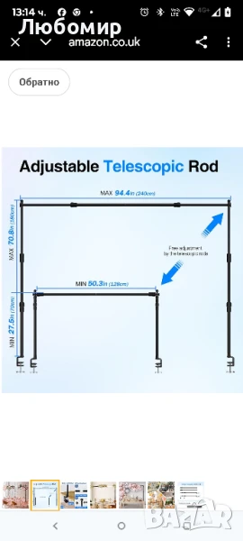 Регулируема стойка за пръчка EMART за маса, дължина 50-94", рамка за арка