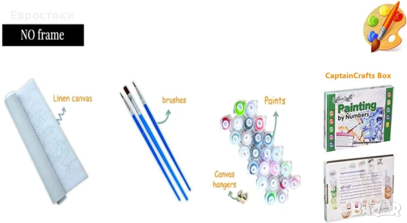 Captain Crafts Рисуване по номера 40 x 50 см. ленено платно, за възрастни и деца