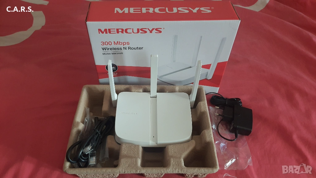 Wi-Fi рутера Mercusys MW305R N 300 Mbps осигурява бърза, стабилна Wi-Fi мрежа за вашите свързани устройства. Безжичните скорости до 300 Mbps го правят идеален за HD стрийминг, онлайн игри и бързо теглене на файлове. Със своите три 5dBi антени, които усилват сигнала и чувствителността на приемане, MW305R осигурява широко безжично покритие. Супер запазен има кутия, оригинално захранване, кабел и работи отлично. - 7 EURO