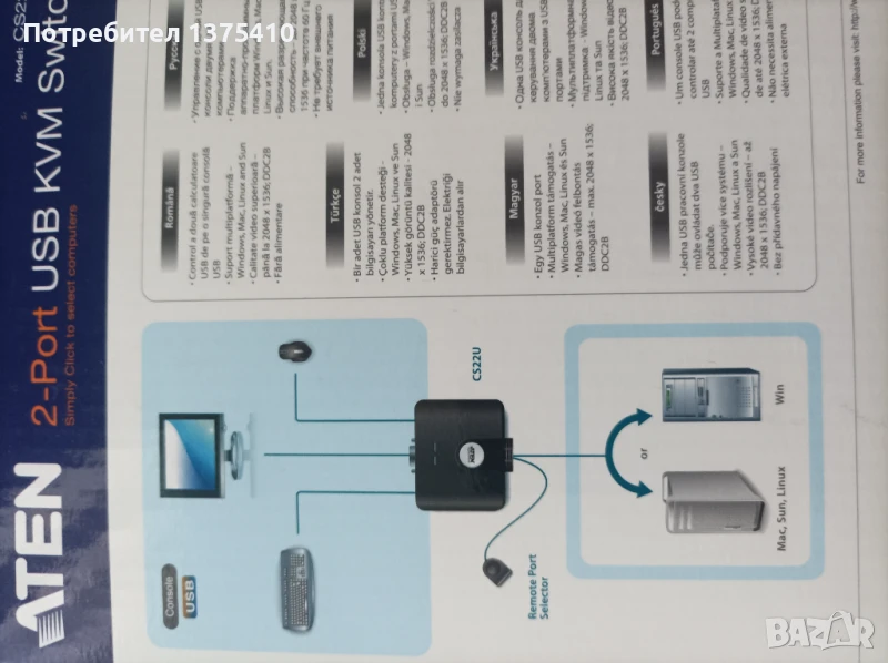 Превключвател на два компютъра към един монитор,клавиатура и мишка.