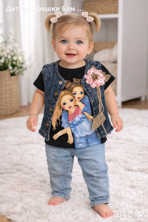 Тази комбинация от блузка с дънково елече е точно за малките принцеси, които обичат да се чувстват комфортно и да изглеждат прекрасно!Подходяща за малки дами, които обичат да се забавляват и да бъдат на мода!