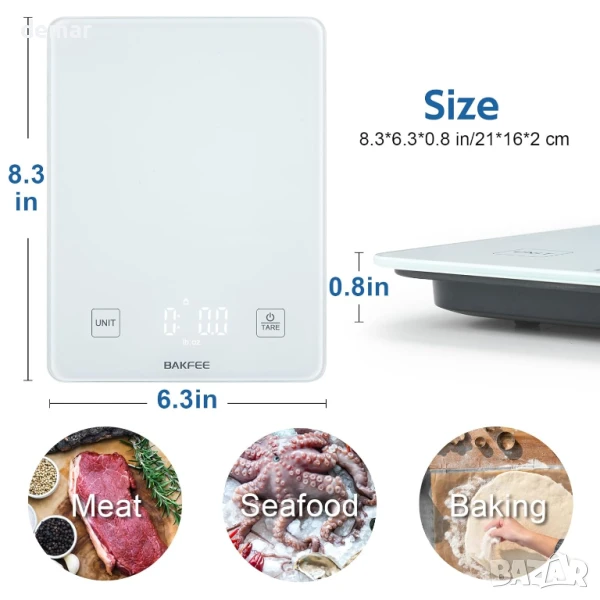 BAKFEE Водоустойчива кухненска везна IP67 със стъклена повърхност, 10 кг хранителна везна, бяла