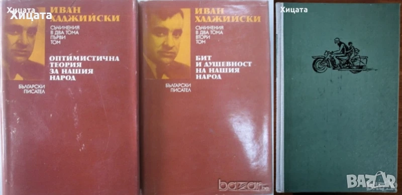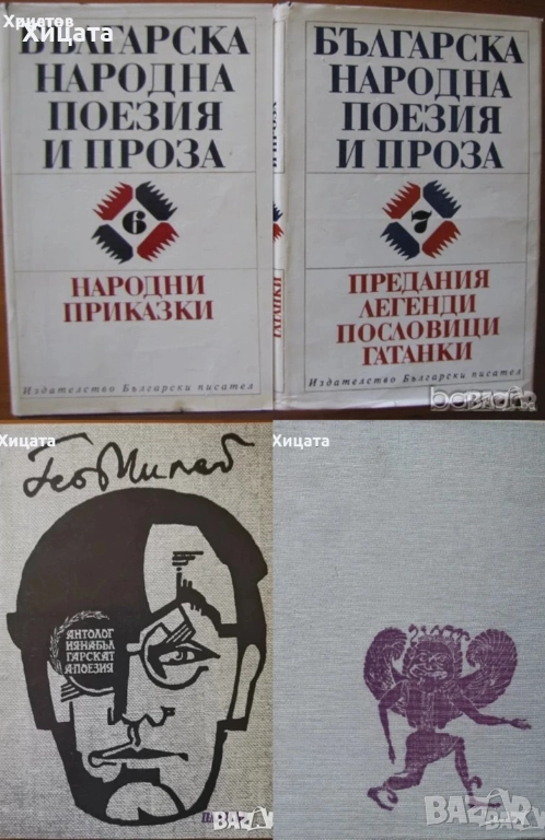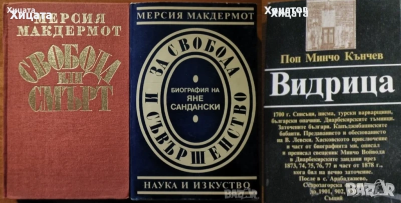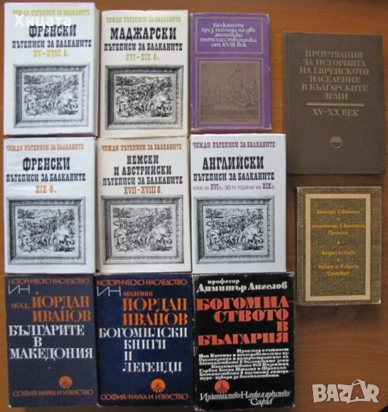 Чужди пътеписи за Балканите. Том 2: Маджарски пътеписи за Балканите XVI-XIX в.,Наука и изкуство,1976г.144стр. - 80лв. Чужди пътеписи за Балканите. Том 4: Френски пътеписи за Балканите XIX в.,Наука и изкуство,1975г.580стр. - 110лв.Чужди пътеписи за Балканите. Том 7: Английски пътеписи за Балканите,Краят на XVI в.-30-те години на XIX в,Наука и изкуство,1987г.824стр.Без обложка - 130лв. Балканите през погледа на две английски пътешественички от XVIII век,Мери Монтегю, Елизабет Крейвън,Отечествен фронт,1979г.244стр. - 70лв..Богомилски книги и легенди,Йордан Иванов-50лв.Българите в Македония,Йордан Иванов-80лв.Богомилството в България,Димитър Ангелов-80лв.Проучвания за историята на еврейското население в българските земи ХV-ХХ век,БАН -70лв.Българи в Италия и италианци в България-80лв. Тътени,Цончо Родев,Христо Г. Данов,1980г.784стр. - 70лв.Човекът без сянка,Цончо Родев,Христо Г. Данов,1976г.320стр. - 20лв; Земя за прицел. Книга 5: Жребият,Свобода Бъчварова,БЗНС,1989г.480стр. - 20лв. Свобода или смърт.Биография на Гоце Делчев,Мерсия Макдермот - 30лв.За свобода и съвършенство.Биография на Яне Сандански,Мерсия Макдермот - 30лв. Видрица,Поп Минчо Кънчев,Български писател,1983г.727стр. - 20лв Левски във времето - документално-мемоарен и литературен сборник,Български писател,1987г.584стр.Отлична! - 70лв. Съчинения в два тома. Том 2. Бит и душевност на нашия народ,Иван Хаджийски,1974г; - 25лв Зен и изкуството да се поддържа мотоциклет.Изследване на ценностите,Робърт М. Пърсиг,Народна Култура,1980г.424стр.Отлична!Твърди корици! - 30лв Българска народна поезия и проза. Том 6: Народни приказки - 30лв;; Българска народна поезия и проза. Том 7:Предания, легенди, пословици и гатанки - 30лв;. Антология на българската поезия /съставена от Гео Милев/,Изд.Пламък,1995г.248стр.Отлична! - 30лв